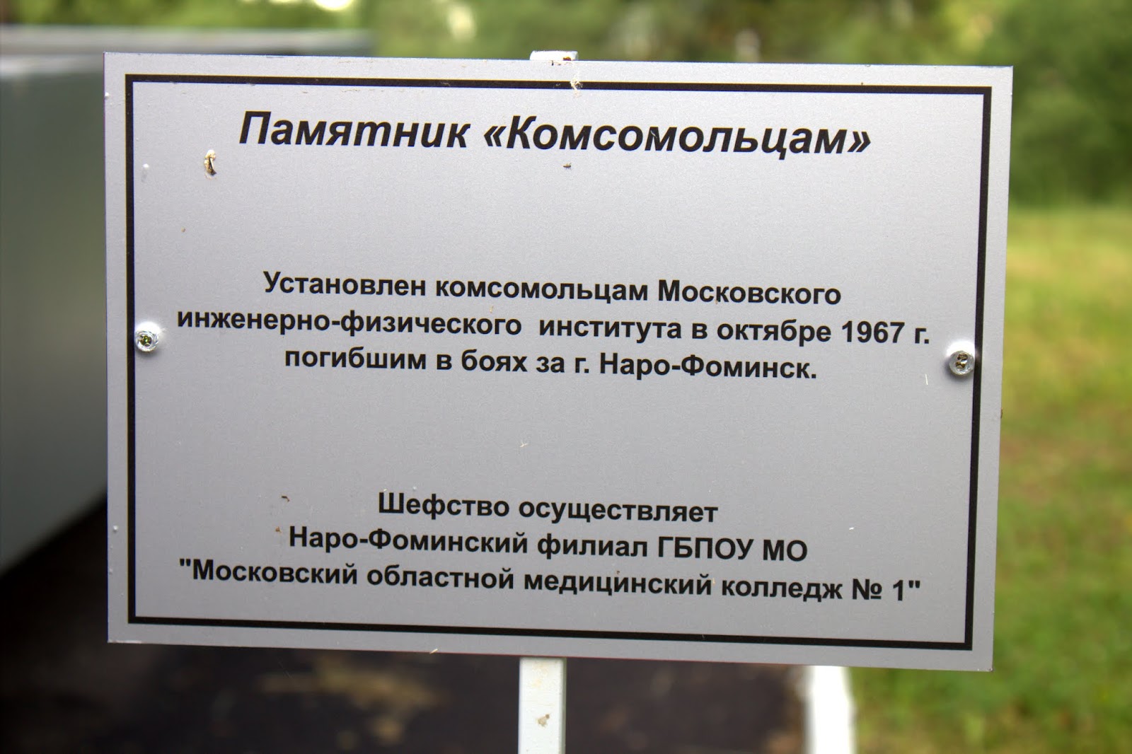 В сопровождении представителей администрации Наро-Фоминска участники автопробега посетили 5 из 26 установленных в городе монументов павшим воинам, возложили цветы и установили лампады, зажжённые у Вечного огня.