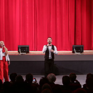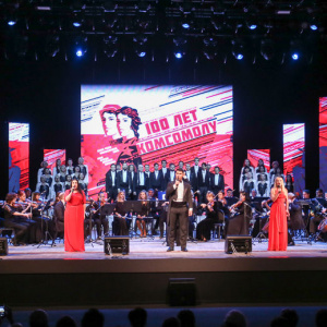 После почетного награждения ветеранов специально разработанными к 100-летнему юбилею ВЛКСМ памятным призам на сцене ККЗ был организован концерт для всех присутствующих. На нем выступили лучшие творческие коллективы города.